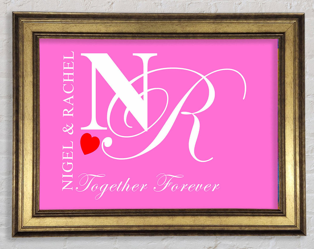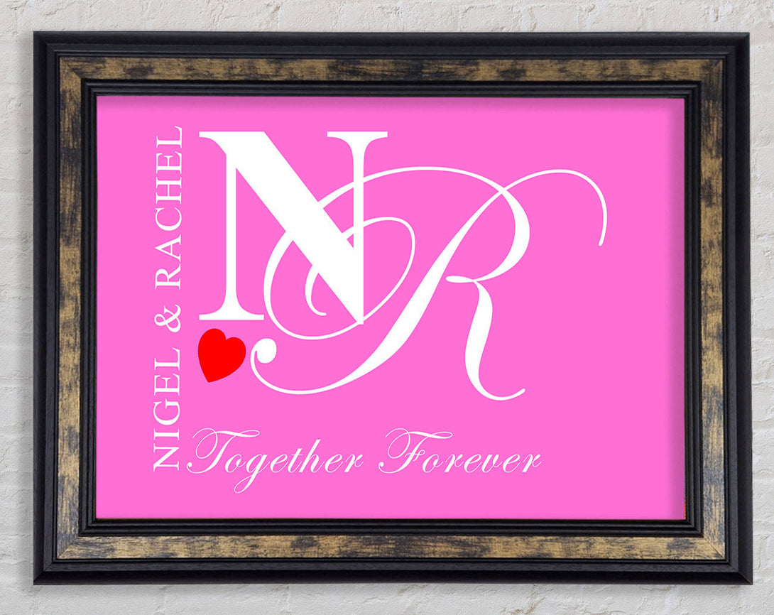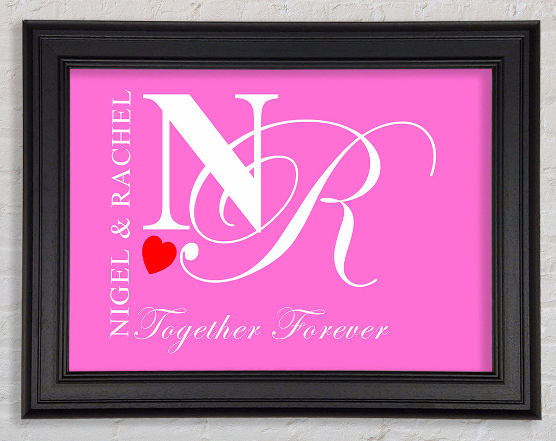 Your Names And Initials Together Forever Vivid Pink Framed Print